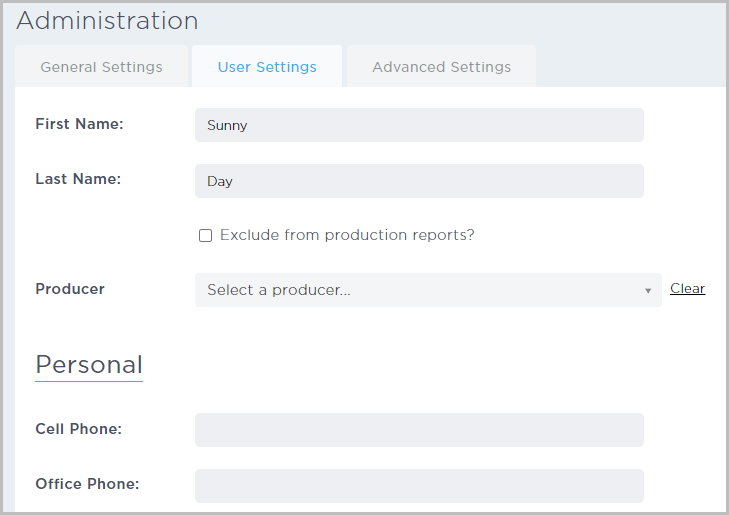- From the Administration tab, all user types can view the General Settings, User Settings, and Advanced Settings tabs