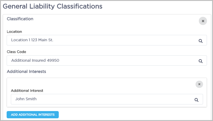 - In the Class Code field, enter Additional Insured.