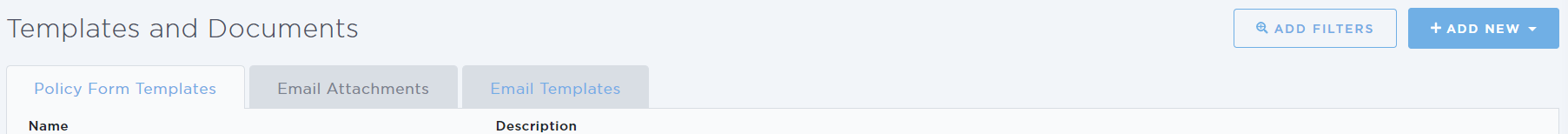 From the "Admin" view, choose "Templates and Documents" and then under "Policy Form Templates", choose "Add new policy form template".